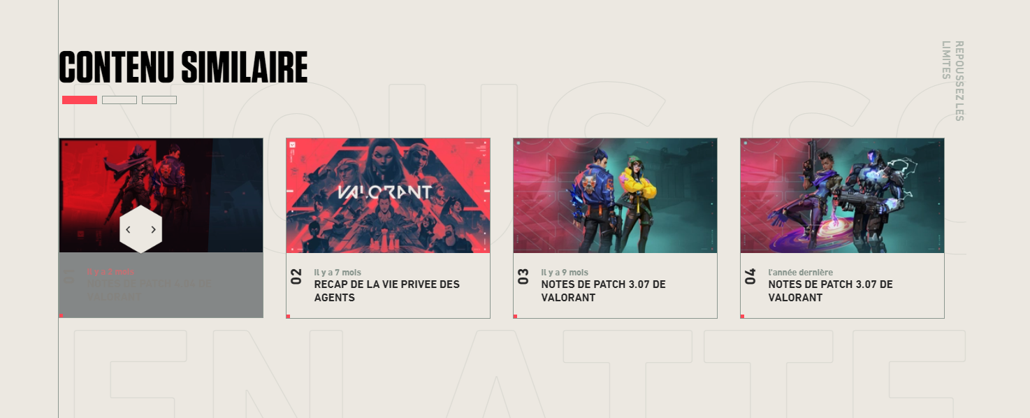 Le slider réaliser avec slickJS permet de voir tous les agents présents sur le jeu Valorant. Le gros challenge pour moi dans ce projet a surtout été les animations des différents éléments en css et javascript.Le projet n'est malheureusement pas en ligne, je vous invite donc à aller voir le site officiel puisque j'ai réaliser une copie exacte du site. https://playvalorant.com/fr-fr/agents/raze/