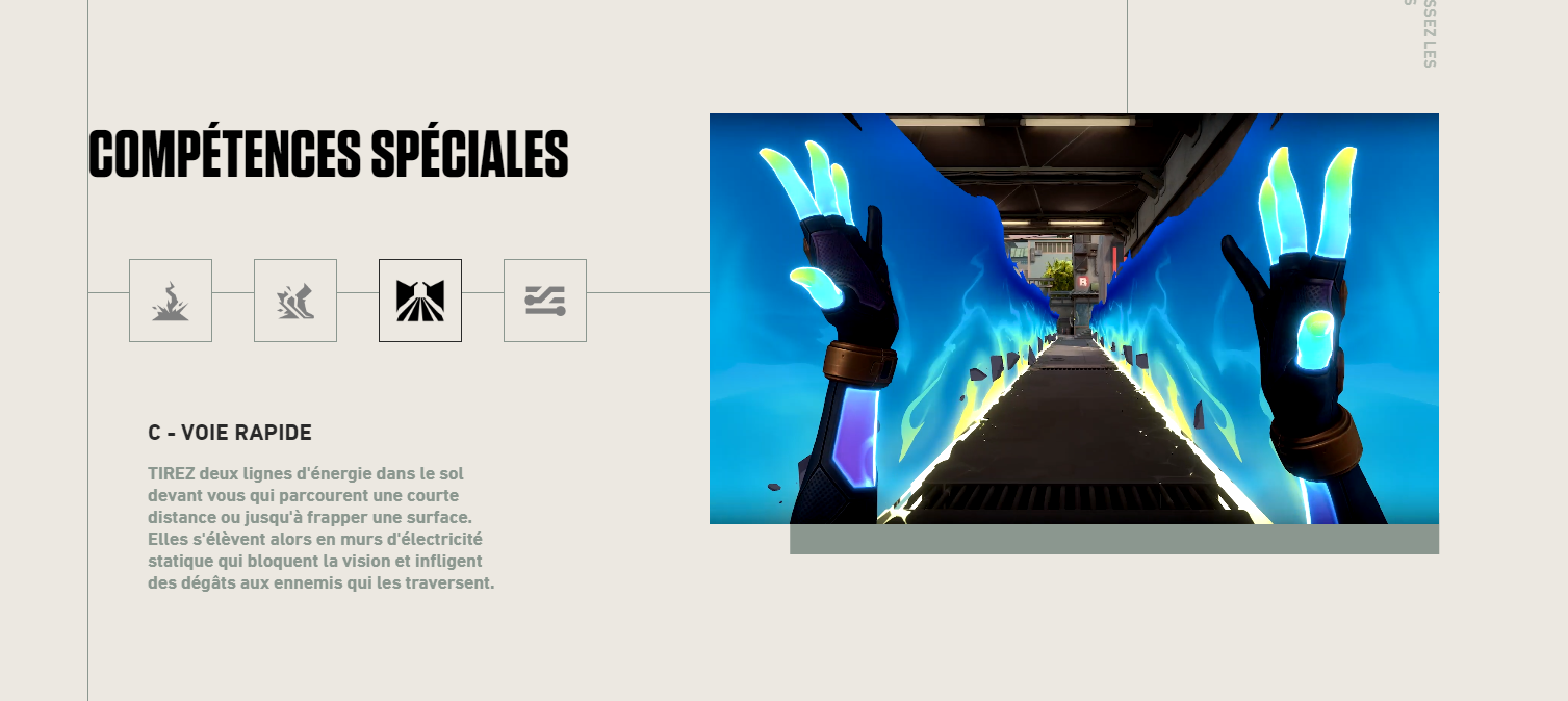 Lorsqu'un utilisateur séléctionne un agent via le slider, la partie de présentation des sorts se met à jour pour afficher les sorts de l'agent. Ainsi l'utilisateur peut découvrir l'ensemble des sorts du jeu simplement.